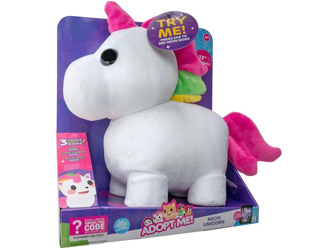 Designed for accessibility, users can activate the light-up features in the unicorn’s horn, mane, tail, and hooves using a 3.5mm switch (not included) or by pressing its ear.