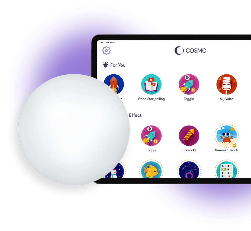 The Cosmo Dot is the core of the Cosmo experience – a multi-sensory, Bluetooth-enabled controller designed to make every interaction engaging, inclusive and purposeful.