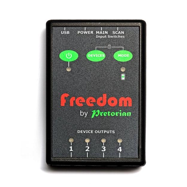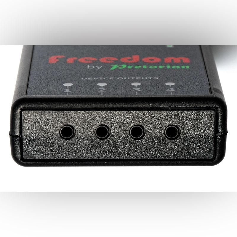 All four outputs are fully isolated so the unit can work with devices which do not share the same ground/ earth connection. Freedom is supplied with a charging cable and four device connection cables.