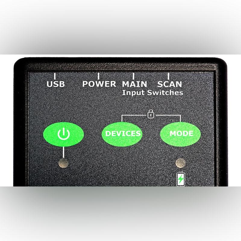 Both audible and visible low battery indicators are provided to prompt the user the recharge and if the battery should become exhausted, the unit ‘fails safe’ by routing the main switch to device 1, allowing the switch still to be used on the most important device. If the device is, for example, a warden call system or a mobile phone, help may then be summoned to rectify the situation.