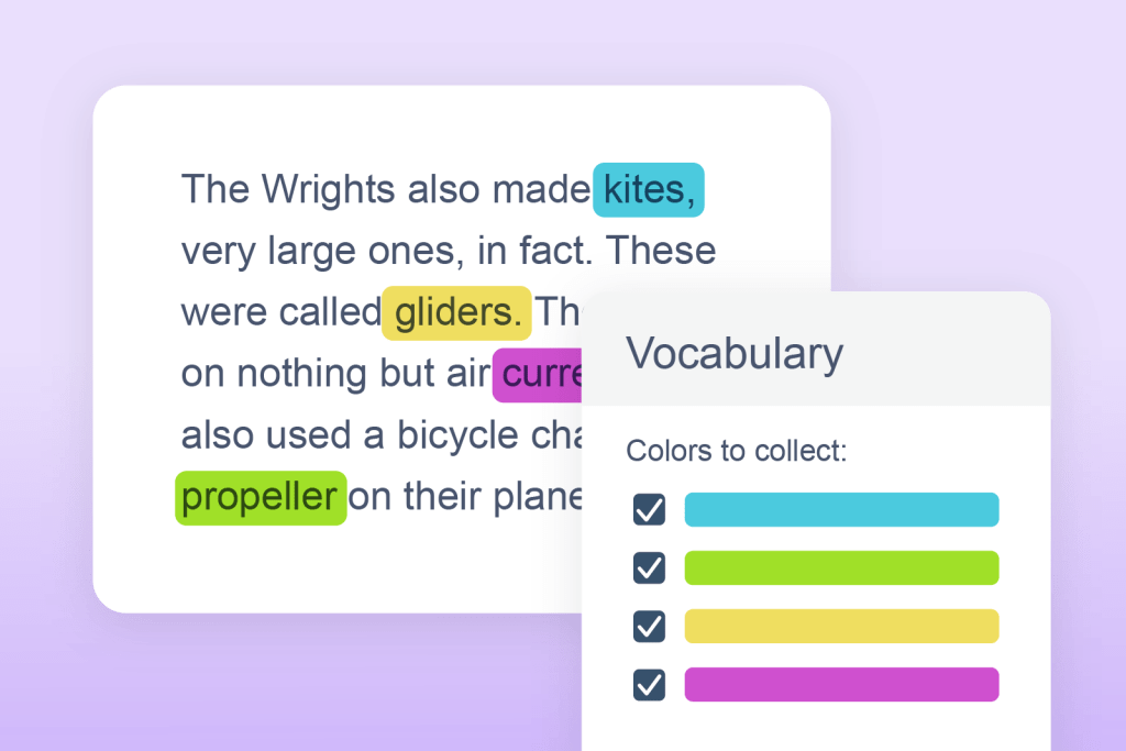 Highlight and collect key pieces of text. An easy way to gather and revise important information.
